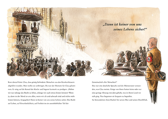 Clemens August Kardinal von Galen – Der Löwe von Münster, Sein Leben für Kinder erzählt Dieser Hüne von Mann, der aus den Erfahrungen seiner eigenen Kindheit im oldenburgischen Münsterland Kraft und Gottvertrauen schöpfte, wurde als Bischof von Münster ein mutiger Vorredner des westfälischen Widerstands, indem er seinen Mund aufmachte und die Missstände seiner Zeit aufdeckte. So kann er auch noch heute den Kindern im Grundschulalter ein Vorbild sein, wenn es um Mut, Treue oder Glaube geht: Themen, die sie ihr Leben lang begleiten werden.