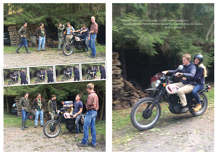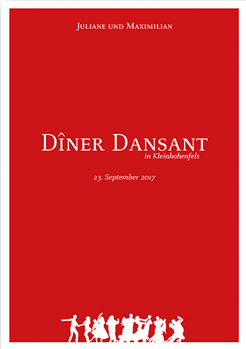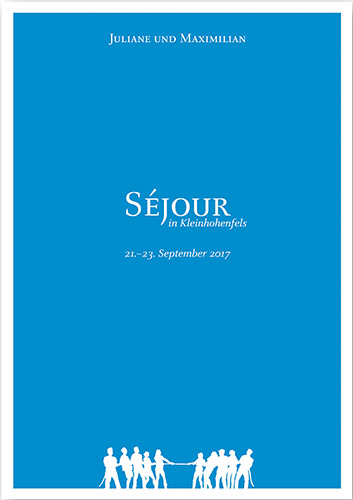 In der gestalterischen Optik der Einladungen (siehe Grafik Design > Drucksachen) habe ich als Erinnerung an das Event ein Wendefotobuch entwickelt. Wenn man von vorne beginnt zu lesen, kann man in einer chronologischen Reihenfolge die Bildern von der Séjour betrachten; wenn man dagegen hinten anfängt zu lesen, beginnt man mit den Bilder des Tanzfestes. Wie man’s hält: Es funktioniert von beiden Seiten.